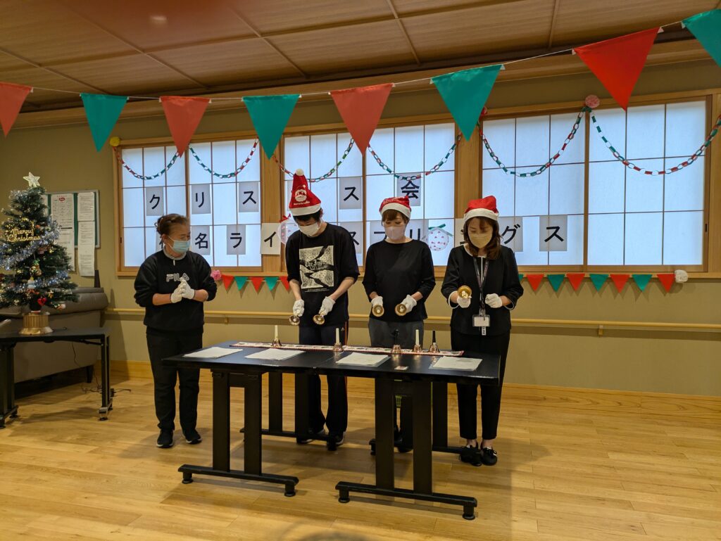 ハンドベル、劇、ビンゴゲーム、プレゼントにケーキと盛りだくさん